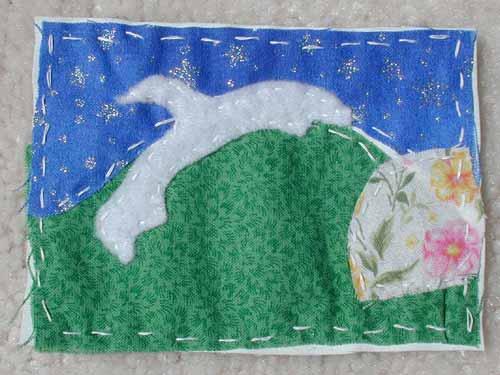 (excerpt of letter from Martha Went) This square is from Tony's cousin, Anne McCauley. She says she thinks of Tony whenever she hears "On Eagles Wings" and "sometimes I sing it just to think about him and be with him for a little while. This quilt piece is the eagle, which I imagine Tony sits on often and looks down on us." Anne McCauley